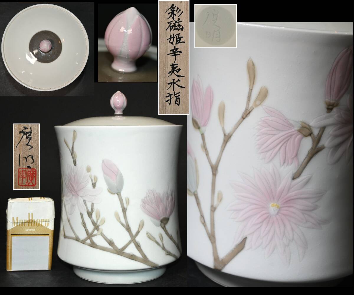 - 真贋保証■筒井廣明 作■ 彩磁姫辛夷水指 共箱・共布 長野県大町市生 人間国宝清水卯一・川瀬満之氏に師事 茶道具 水器 水差 検:黒田陶苑