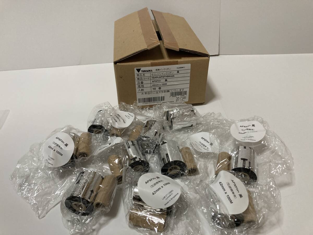 - 未使用 TERAOKA 寺岡 セミレジンインクリボン 黒 10巻 感熱インクリボン APXFH+ 黒 包装機専用 42㎜×100M