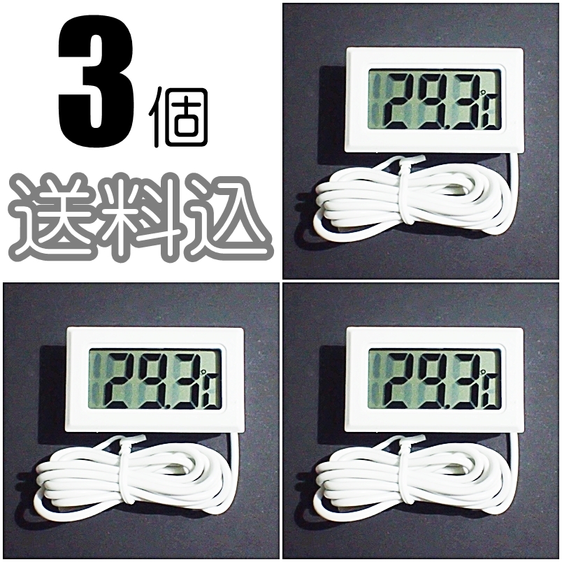 - 【送料込】デジタル水温計 3個 白 電池付 温度計 金魚・シュリンプ・メダカ水槽の水温管理に
