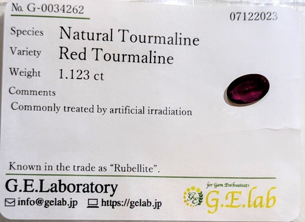 > トロッとしたネオン感のある濃厚ローズレッド 天然ルベライト トルマリン 1.123ct ソーティング付き ルース 裸石 パワーストーン 希少