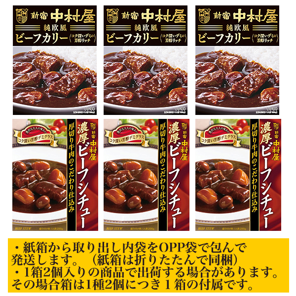 - ■新宿中村屋 純欧風ビーフカリー(黒箱)・ビーフシチュー 2種6箱■