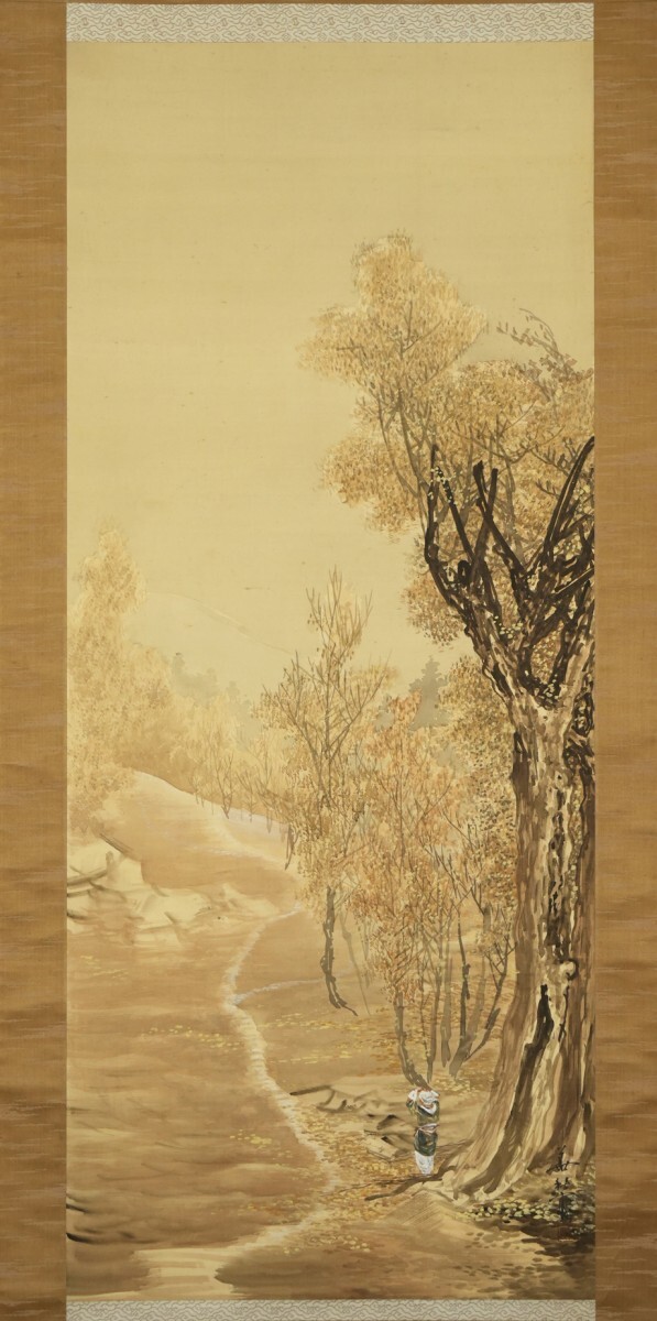 - 【真作 幼年作と有】掛軸「井口華秋 秋郊」共箱 日本画家 竹内栖鳳師事 栖鳳塾の三羽烏 日本自由画壇 絵画