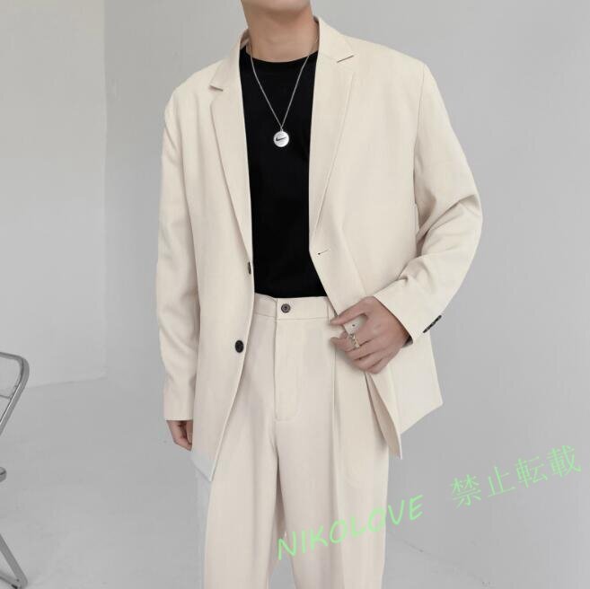 - 新品 夏物 スーツセットアップ 二点セット カジュアルスーツ メンズ ジャケット パンツ 上下セット ウエストゴム付き オフホワイト