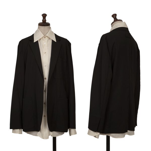 > ジャンポールゴルチエファム ストライプシャツレイヤードデザインテーラードジャケット 黒オフ他40