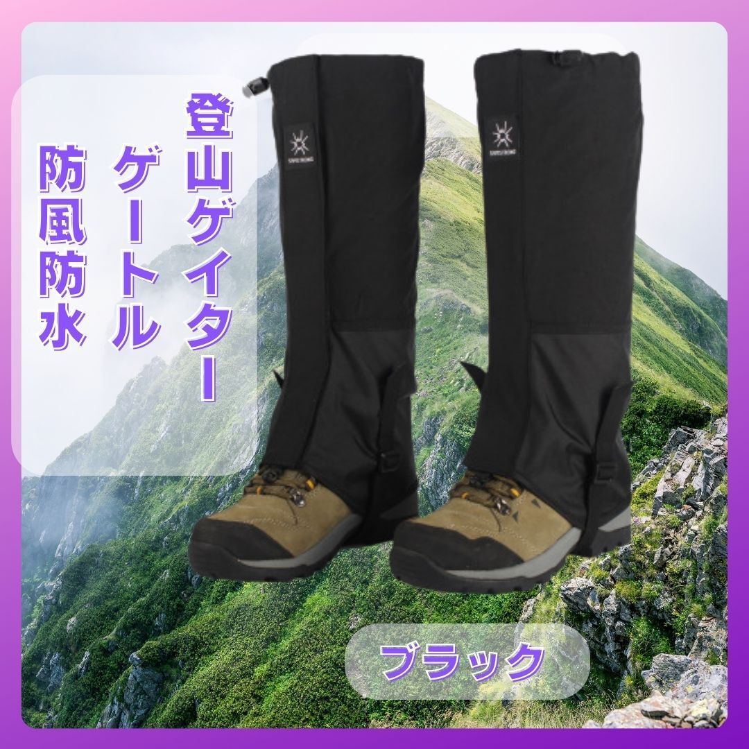 - 登山用ゲイター 登山スパッツ 男女兼用 ロング レッグカバー ブラック 1178 防風 防水 防雪 ハイキング アウトドア ゲートル