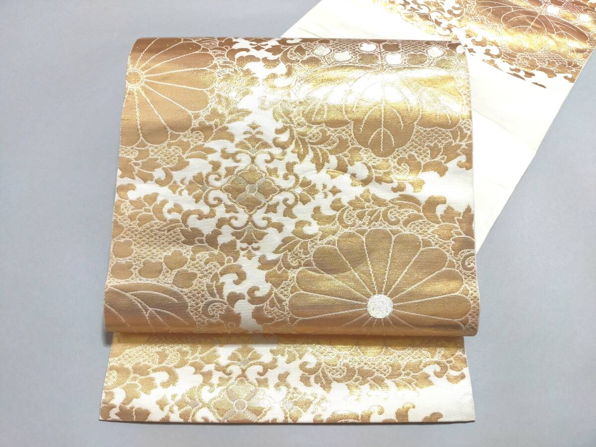- FB27 袋帯 正絹 六通柄 金銀糸 菊桐唐草文 吉祥文様 長4m14cm