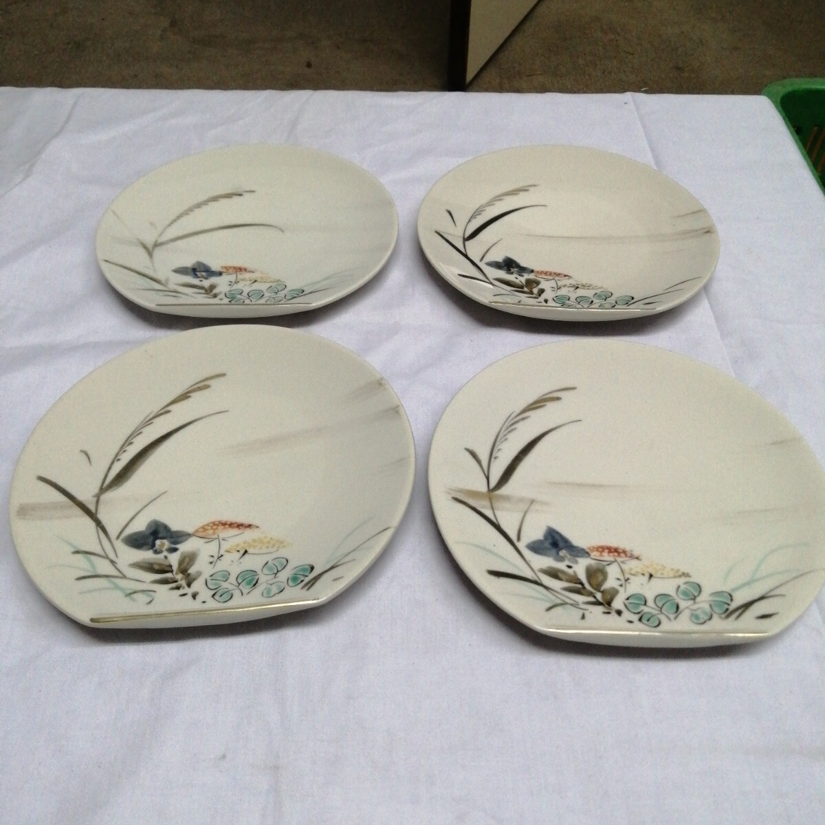 - 有田焼 計4枚 飾り 手持ち皿 花 (約19.6×18.5cm)