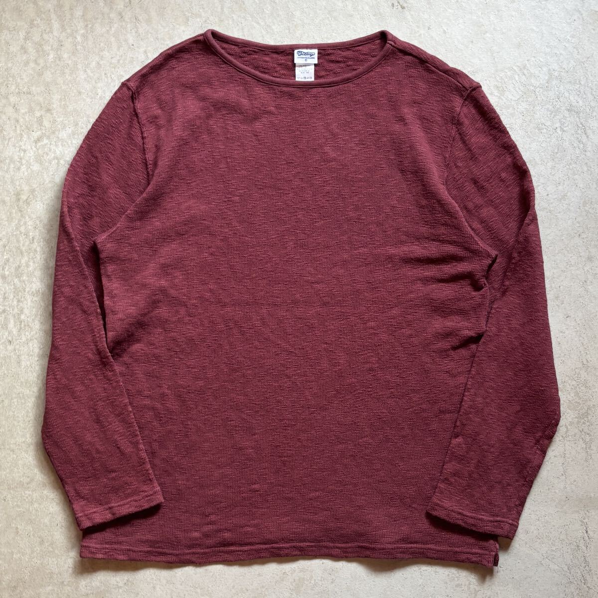 - 【Tieasy】ティージー ボートネック 長袖 Tシャツ Tee バスクシャツ カットソー メンズ 6 コットン バーガンディ 無地 古着 USED 正規品