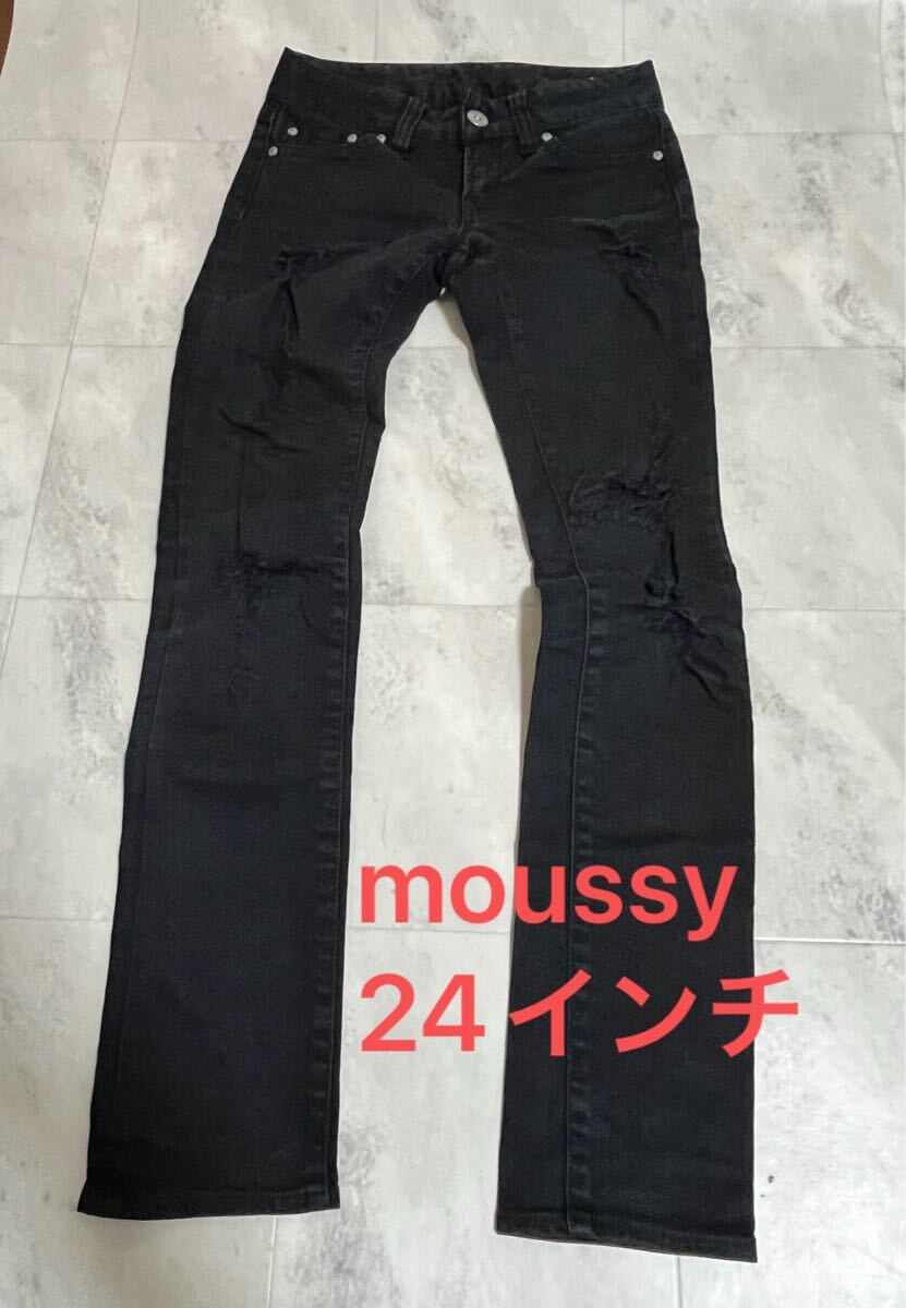 > moussy/マウジー/ストレッチデニムパンツ ブラック 黒 クラッシュ ストレッチスキニー パンツ/デニム/24