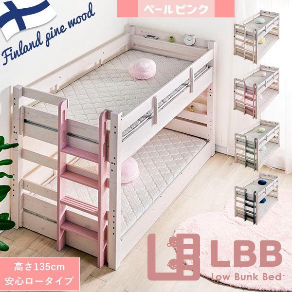- 送料無料 大人も使える業務用 高135cmロータイプ 2段ベッド 耐荷重500㎏構造 LBB 直列階段 ペールピンク WH-PPK