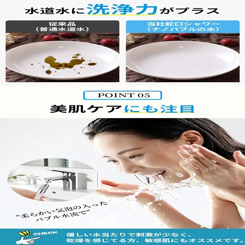 > 節水35%削減省エネキッチンシンク洗面台バスマイクロナノバブル泡ミスト搭載調整可能塩素除去機お肌にも良く食器洗洗浄で油汚れ落ちる便利