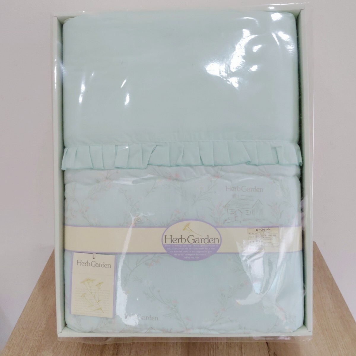 > ★未使用保管品★西川 herb Garden ローズケット 掛布団 シングル用 裏地綿100% ガーデン柄 グリーン 寝具