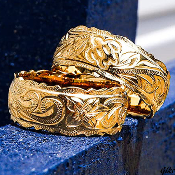 - 【傷や変形に強く、日常使いしやすいステンレス素材】 ハワイアンジュエリー ペアリング 指輪 メンズ レディース イエローゴールド
