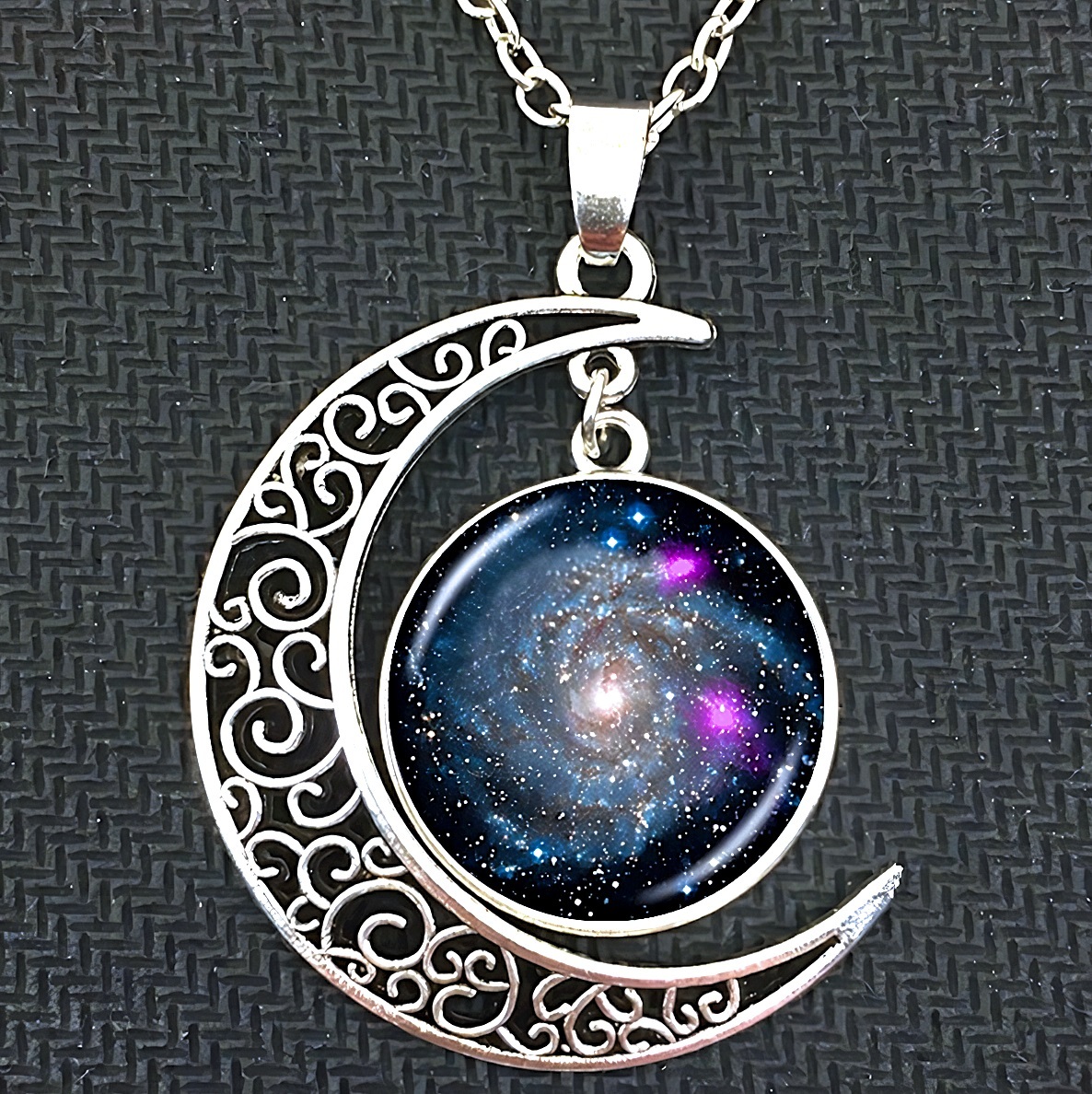 > 新品★送料無料★宇宙の銀河 ピンク星ギャラクシー 月彫プラチナ仕上 925シルバーネックレス 誕生日プレゼント旅行秋祭ギフト国内発送