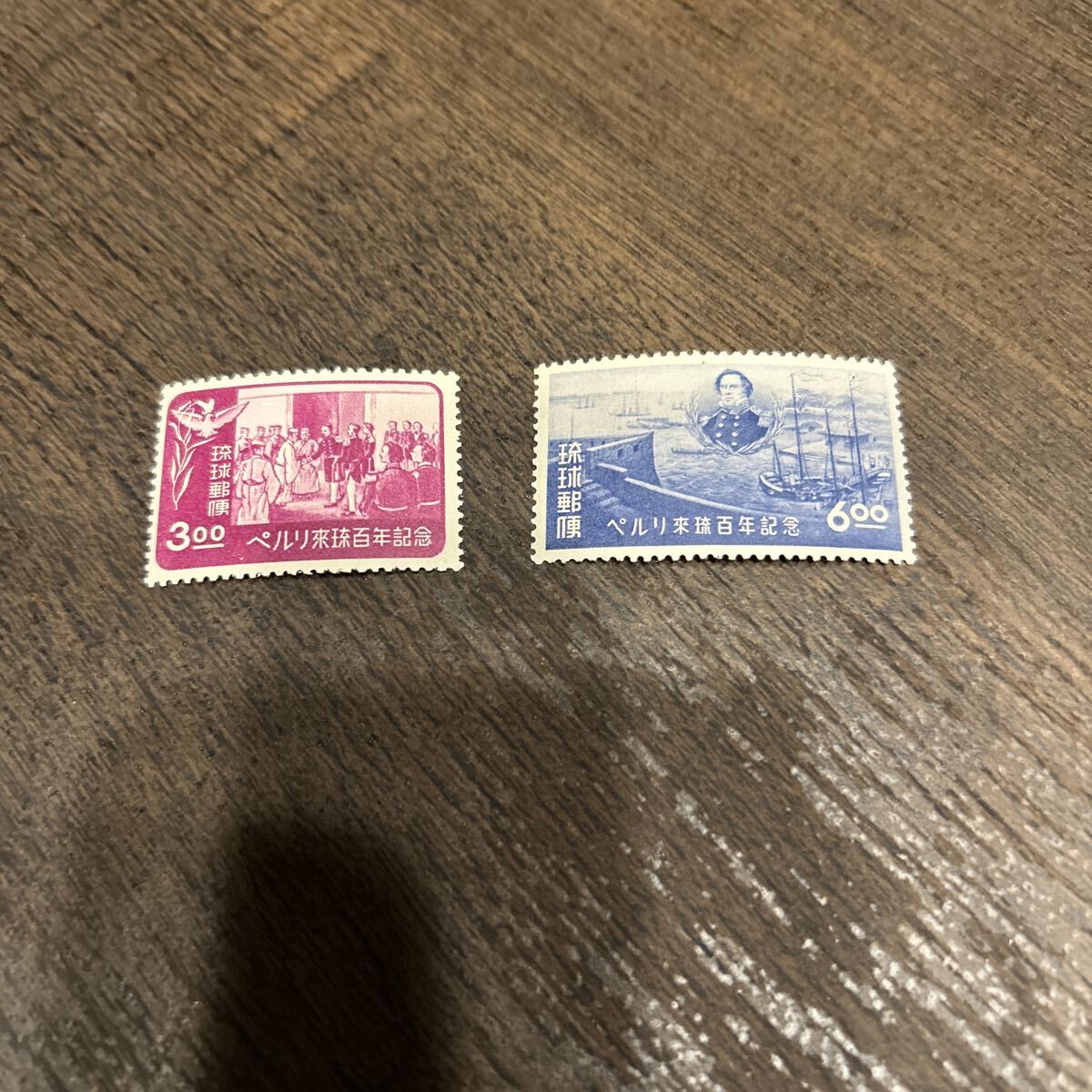 > ★未使用 琉球切手 ペルリ来琉100年記念 2種セット 琉球執政の会見 ペルリとその艦隊 3円切手 6円切手 コレクション コレクター
