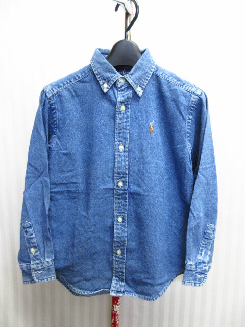 - ラルフローレン 90sヴィンテージ ダンガリーシャツ 6 キッズ 子供 長袖ボタンダウンシャツ ロゴ刺繍デニムシャツ シャンブレー08294