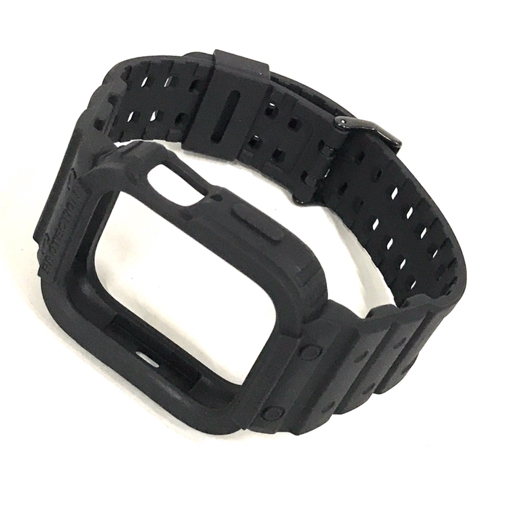 > ブランド不明 対応機種不明 スマートウォッチ用 ケース・ベルト一体型バンド TPU素材 全長約29cm ブラック系 黒系