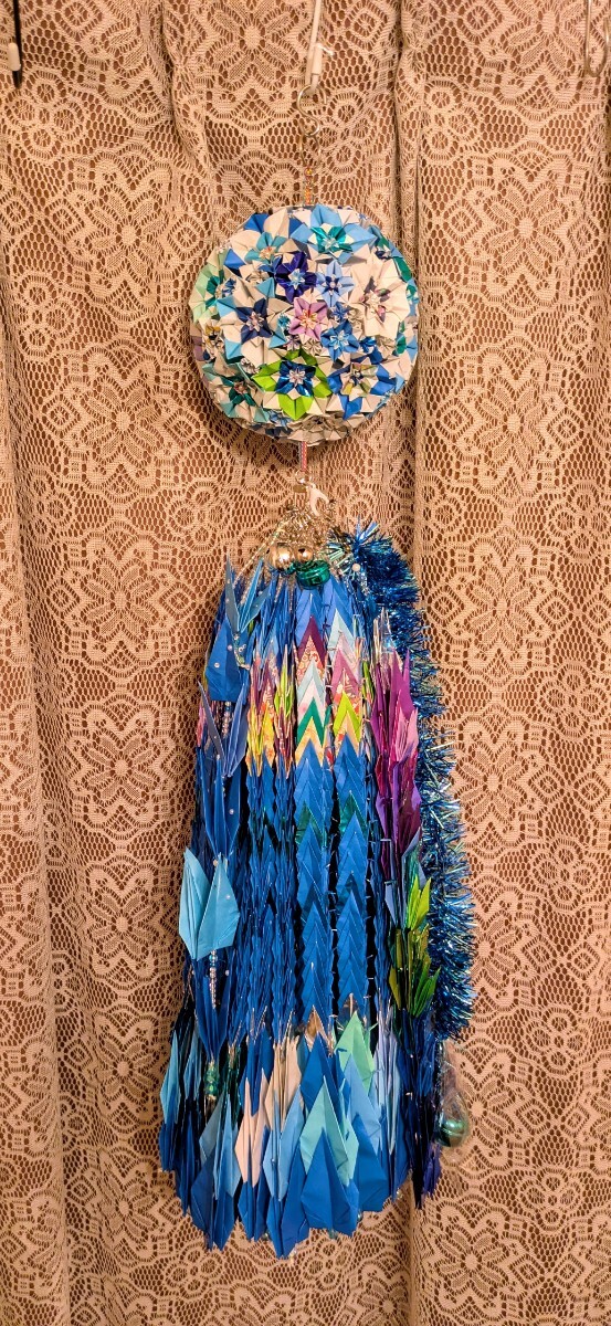 - 青系・緑や紫系♪くす玉★千羽鶴★千羽鶴はカニカンフック着脱可~御鈴が揺れて〜ホイル綺麗★商売繁盛★願成就★縁起担ぎ★幸福★贈答品♪