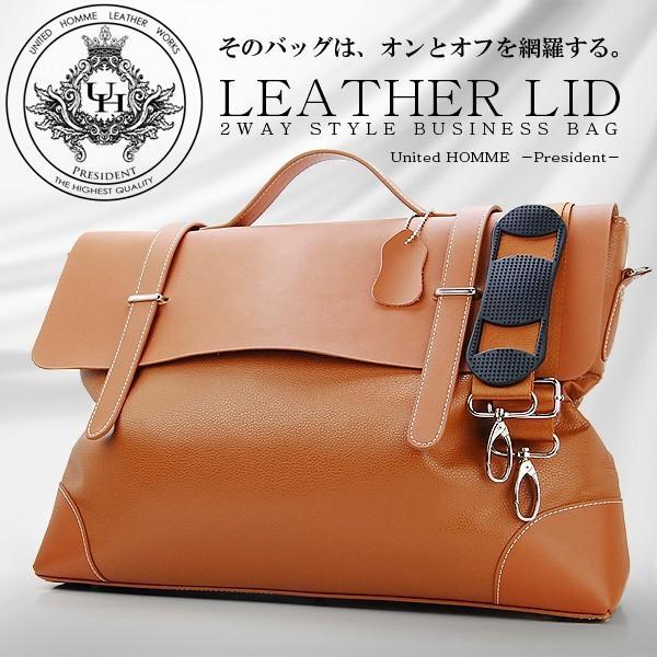 - 【United HOMME】レザーリッド2WAYビジネスバッグUHP-2303■キャメル×1個