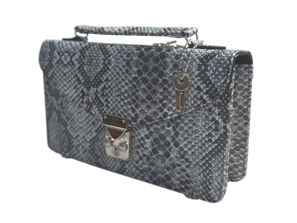 - パイソン柄型押しミニセカンドバッグ No.2025H/BK ブラック 手提げ大型財布 パイソン/ブラック×1個