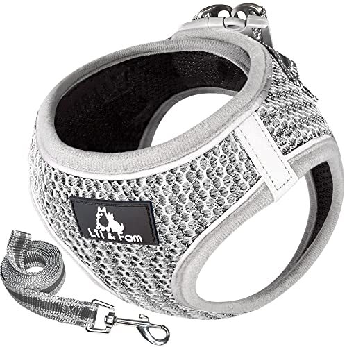 - Lil&Fam 犬 ハーネス 胴輪 リードセット 身体に優しい 反射材付き メッシュ 小型犬 中型犬 猫 (グレー XL