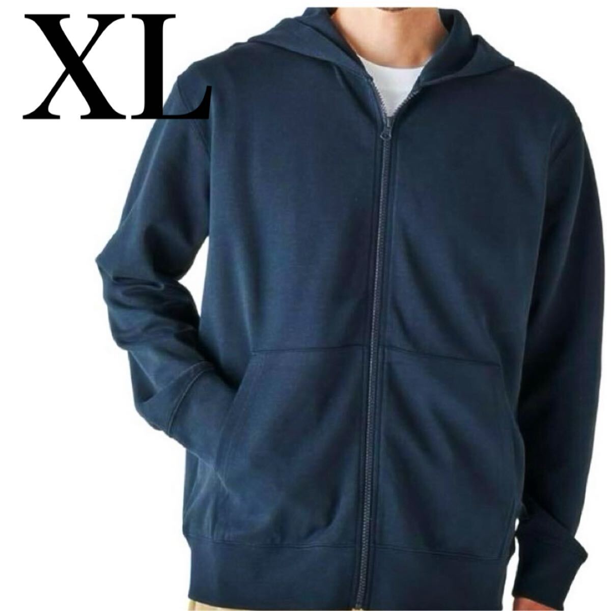 - パーカー メンズ xl 長袖 フルジップ ネイビー スウェット フード ジップアップパーカー