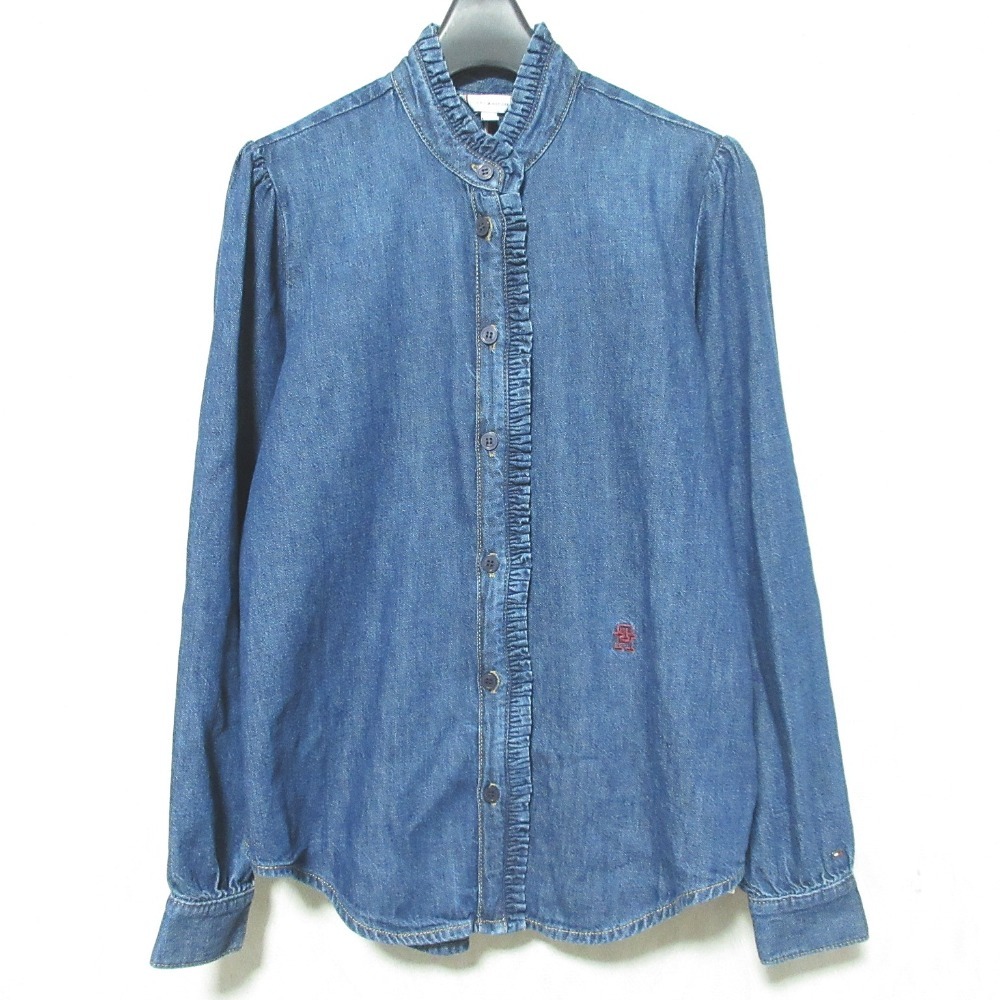 - 美品 22AW TOMMY HILFIGER トミーヒルフィガー フリルデニムシャツ WW0WW36372 サイズ32 ブルー