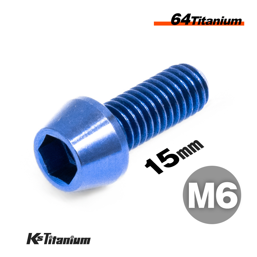 - チタンボルト M6×15 P1.0 ブルー 1本売り 64チタン テーパーボルト FULLスレッド 全ネジ Gr5 チタン合金 バイクパーツ 自転車 ボルト 軽量