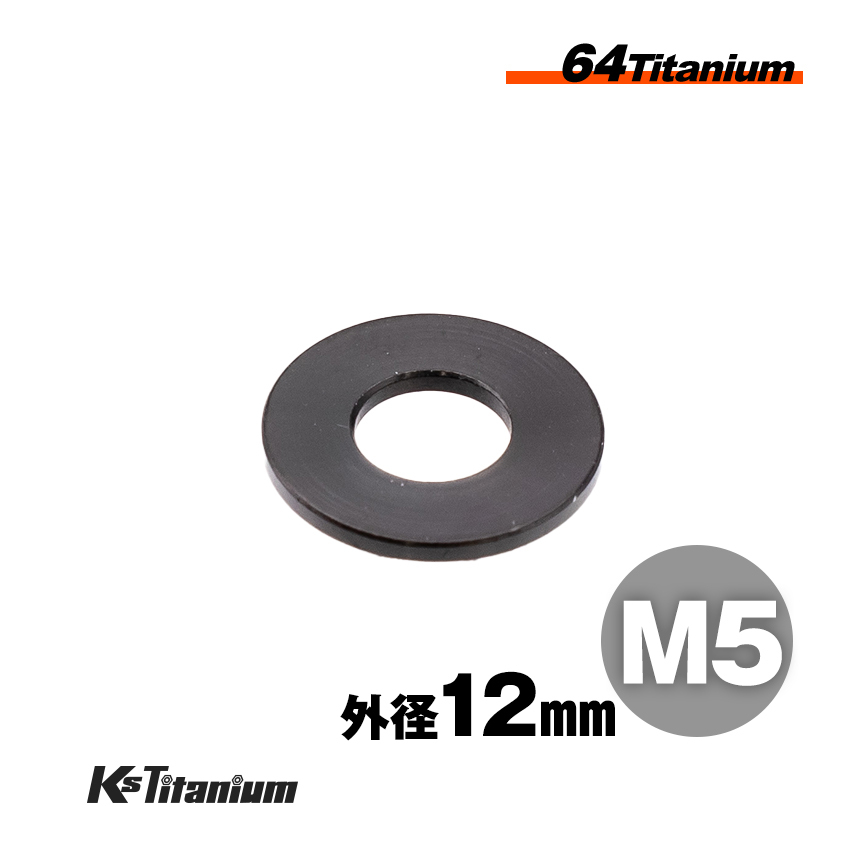 > チタンワッシャー M5 12mm 厚み1.0mm ブラック 1枚 64チタン ワッシャー バイクレストア カスタムパーツ 座金 カラー スペーサー