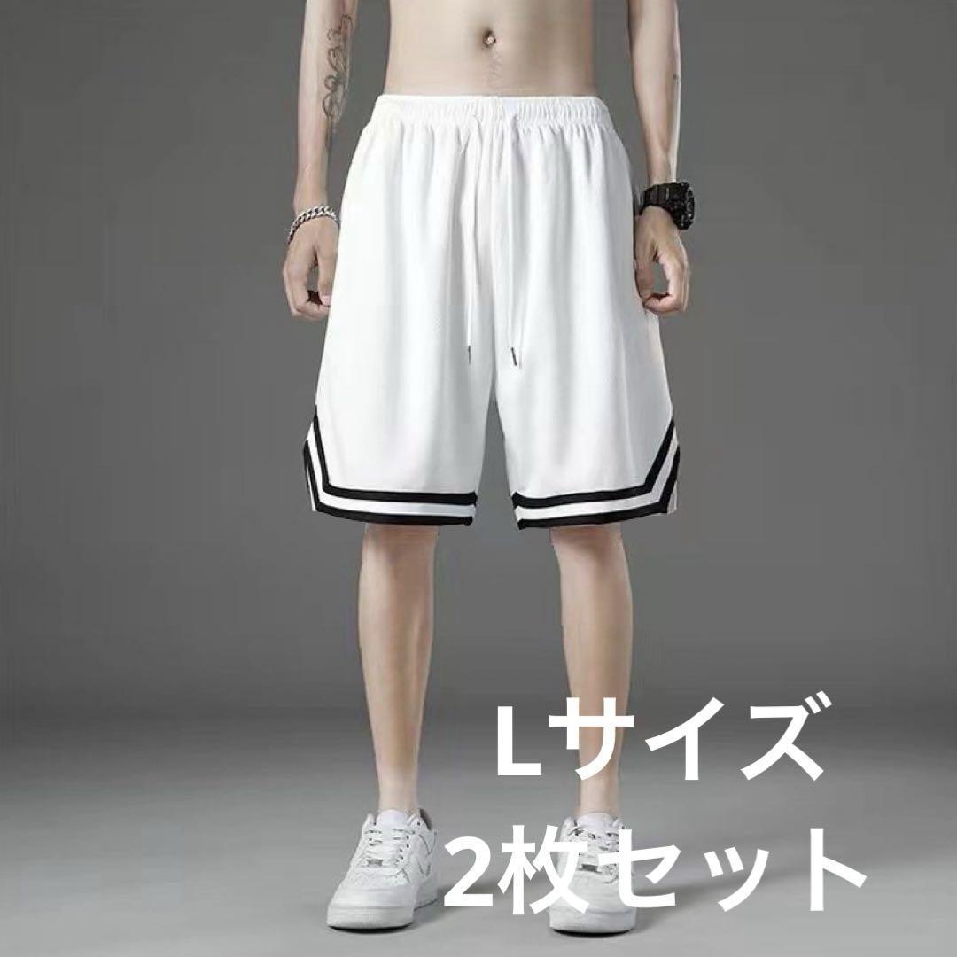 - 【2枚セット】バスパン メンズL 白 ホワイト 軽量速乾 ハーフパンツ 練習着