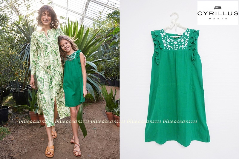 - 新品 16,000円 国内未発売フランス子供服【Cyrillus】グリーン エンブロイダリーラッフルワンピース 14A 150cm~(140cm)スカート パンツ