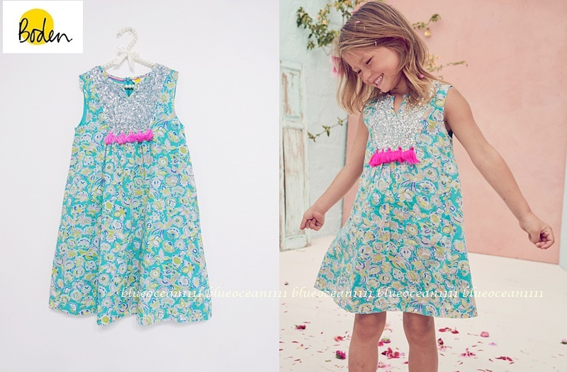 > 国内未発売 イギリス王室もご愛用【Mini Boden】スパンコールビジュー付きフリンジワンピース 140-130cm相当 スカート パンツ Tシャツ
