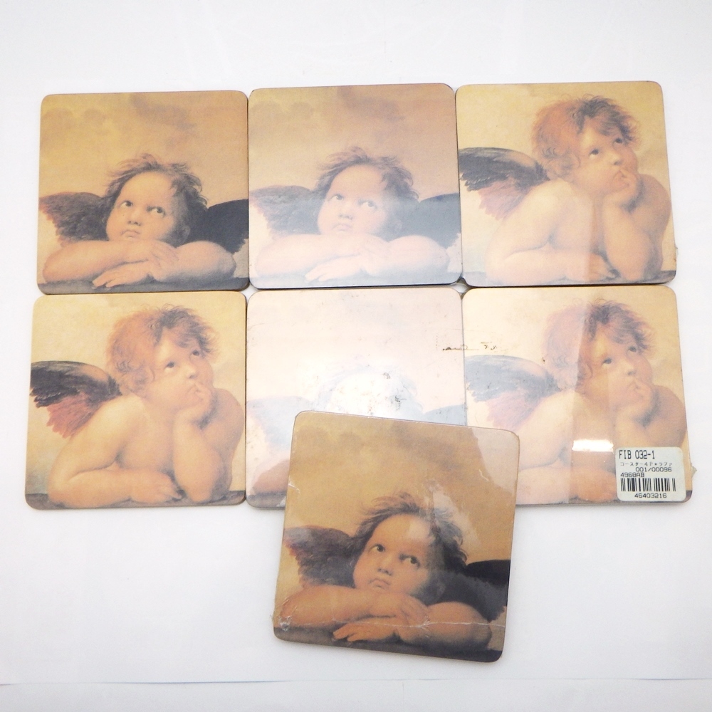 - SI-127【未使用】システィーナの聖母 ラファエロ 天使 コースター12枚セット 裏コルク アンティークショップ保管品 クリスマス