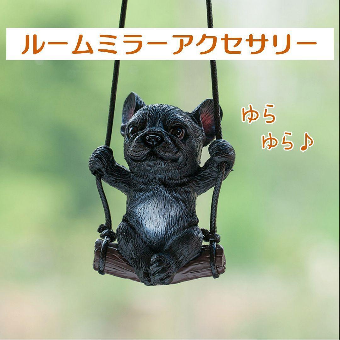 - 揺れる ルームミラー アクセサリー ブラック カーアクセサリー 車内 飾り 黒 ブルドッグ 犬 雑貨 インテリア 置物 装飾