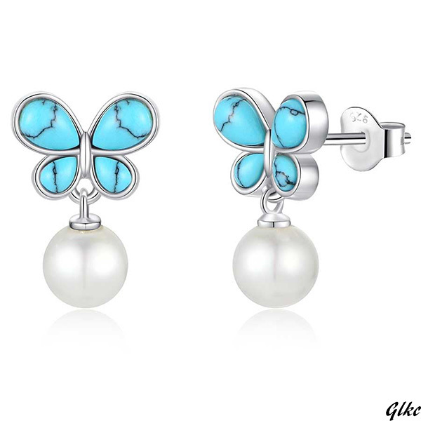 - 【シルバーS925製でアレルギー対応、長く愛用可能】 ターコイズ ピアス ハワイアンジュエリー 蝶モチーフ パワーストーン ギフト 貝パール