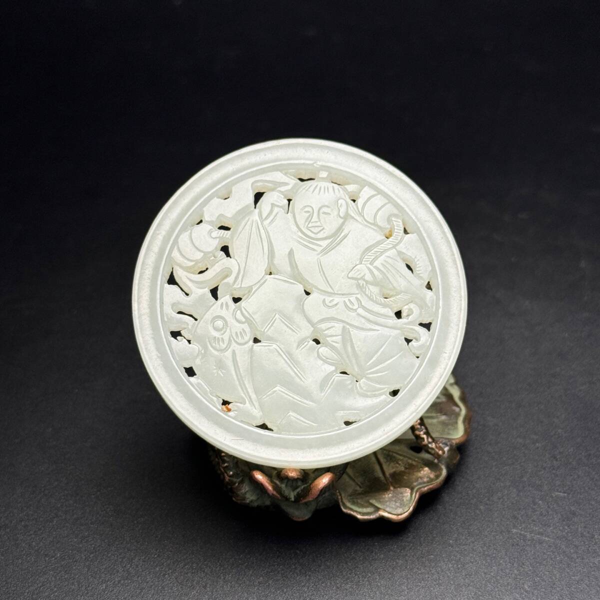 - 蔵友旧蔵出 和田玉製 細密彫 透空彫 劉海戲金蟾紋 玉佩 玉質細膩 希少珍品 貴重品 置物 古賞物 中国古玩 中国古美術品