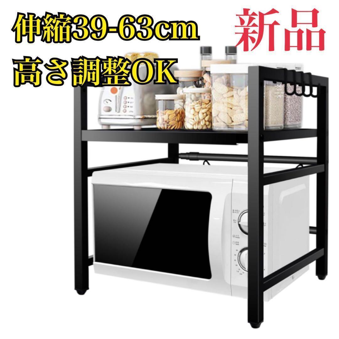- 電子レンジラック 高さ調整可能 黒 伸縮 レンジ台