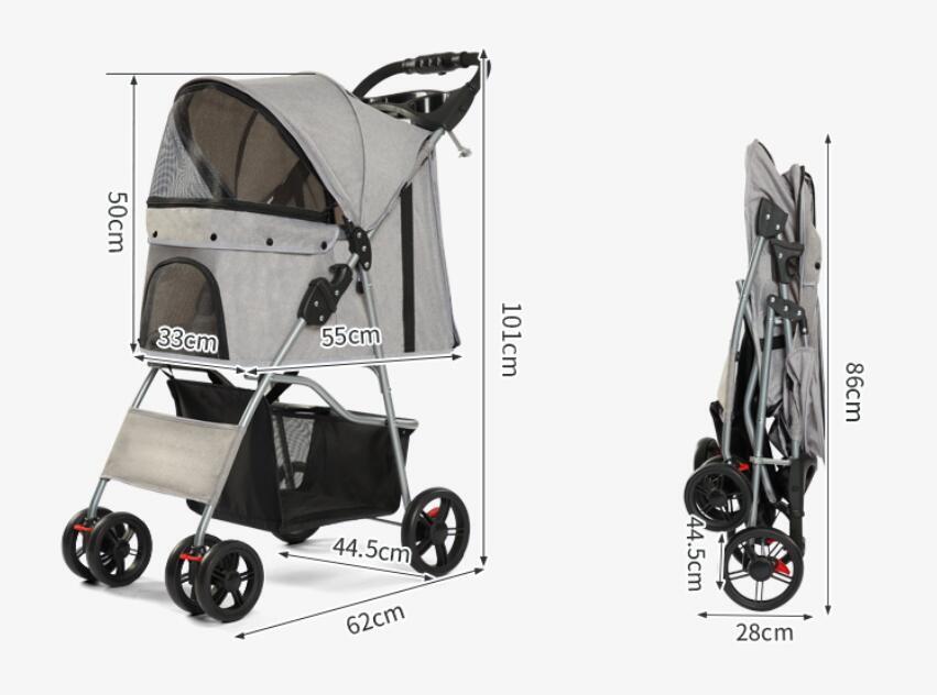- 新入荷ペットカート 4輪 ブラウン 耐荷重15kg 折りたたみ 軽量 ペットバギー 中型犬 小型犬 介護 散歩 犬 猫