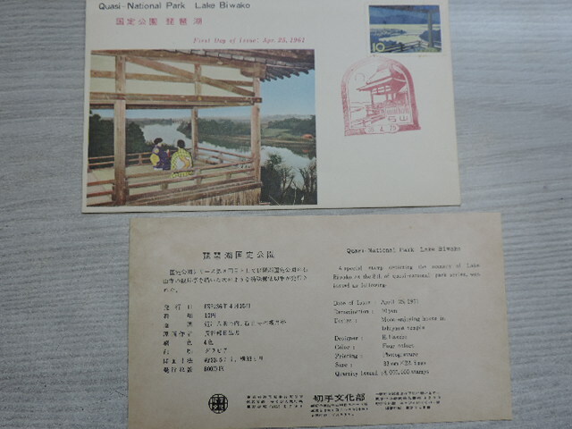 - ★琵琶湖・国定公園シリーズ★ 初日カバー 昭和36年4月25日・石山 10円切手 切手文化部発行