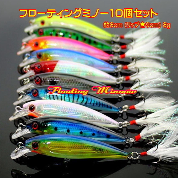 - ■フローティングミノー10個セット■8cm バス系・青物 ★フィッシュイーター★