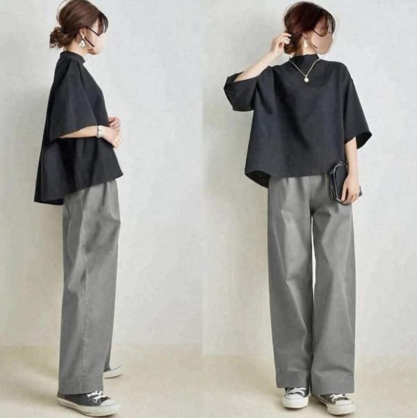 > 人気推薦 / レディース パンツセットアップ ワイドパンツ ブラウス 2点セット上下セット トップス+ロングパンツ 上品 着痩せ / グレー