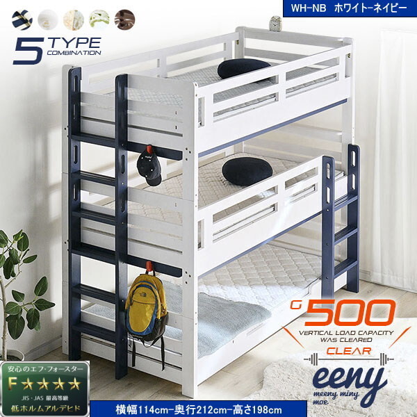 - 3段ベッド イーニー 送料無料 大人も使える 業務用 耐荷重500㎏構造 フラット仕様 2段に分けて使える WH-NB ネイビー