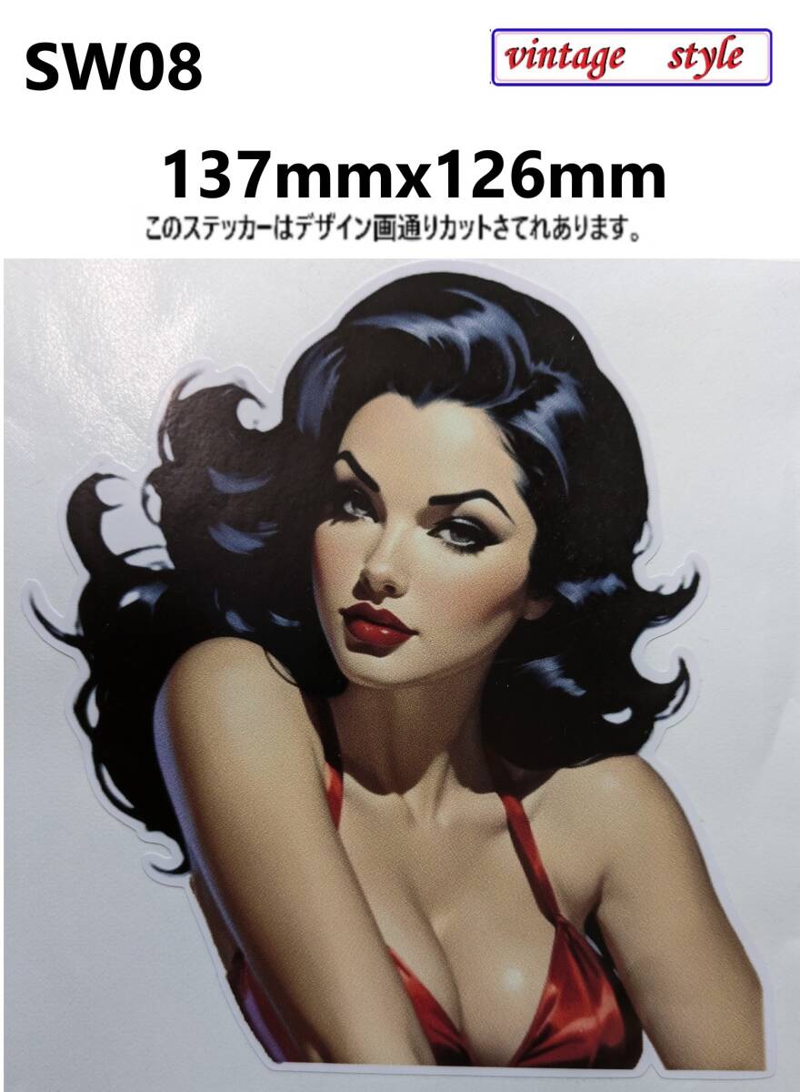 - SW08-07 レトロ 美人 セクシー&クール 顔上半身 ヴィンテージスタイル ピンナップガール セクシーステッカー ギター デカール
