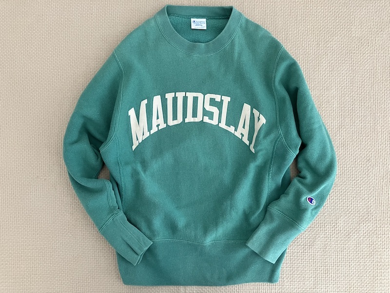 - 即決 別注品 復刻 青タグ champion REVERSE WEAVE クルーネック スウェット 短丈 グリーン Mサイズ MAUDSLAY モーズリー アダムエロペ