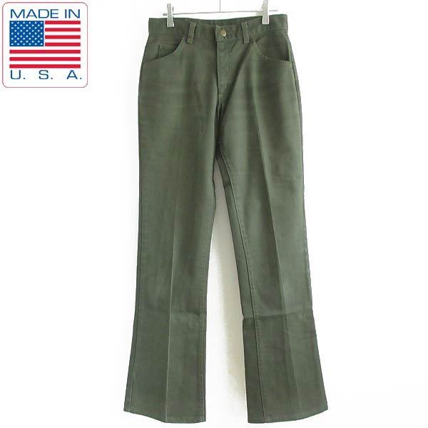> 80s USA製 Lee リー 200-0133 ツイル パンツ フレアパンツ 緑系 W30 カツラギ 42TALONジップ アメリカ製 ビンテージ D143-25-0098ZV