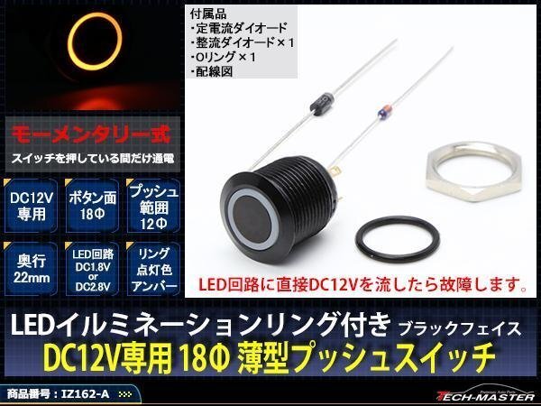 - ブラック LEDリング18φ プッシュスイッチ 12V アンバー IZ162-A