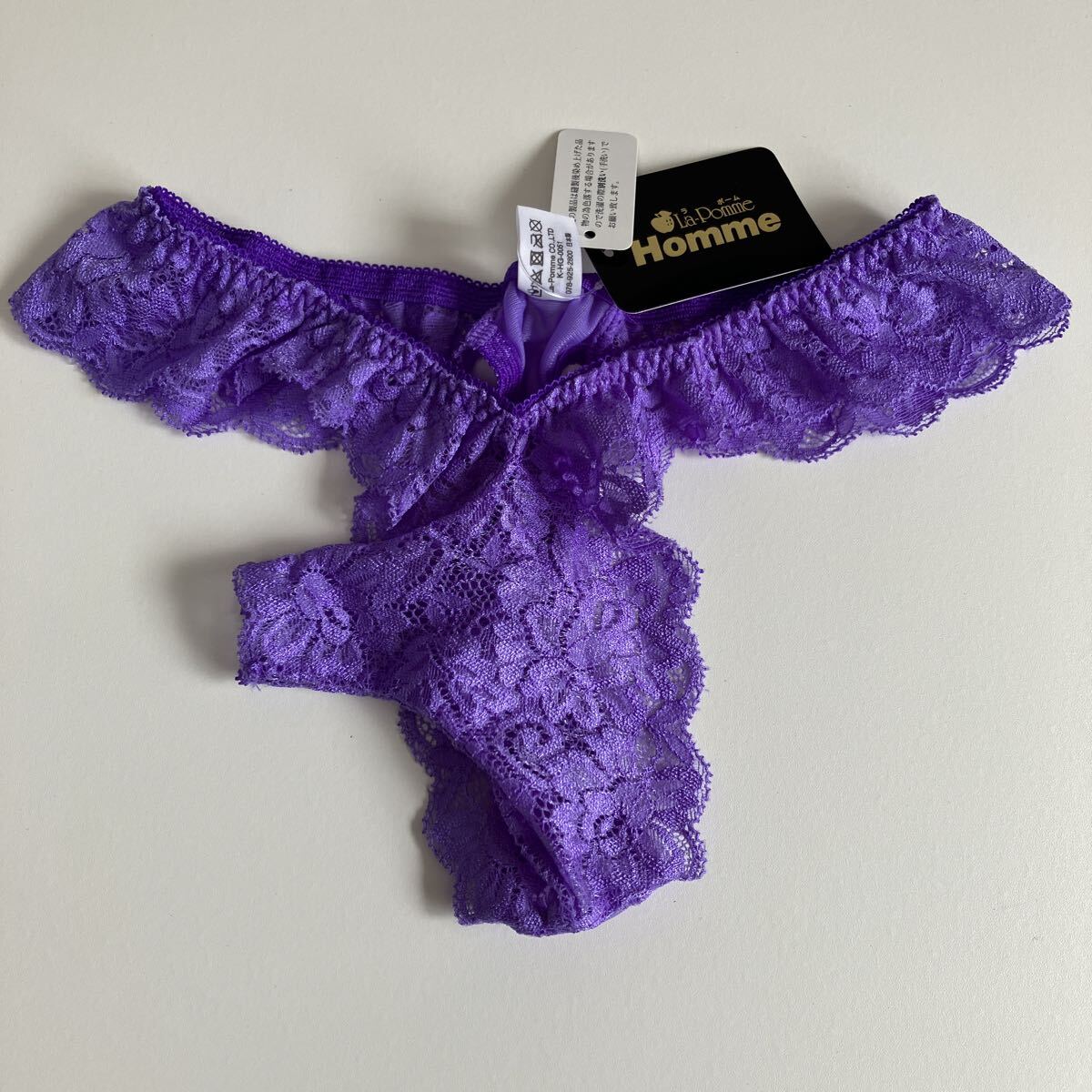 - ラポームオム メンズ La-pomme homme NHK生地 綺麗なストレッチレース 貫通型ゾウさん Tバックビキニ パープル M