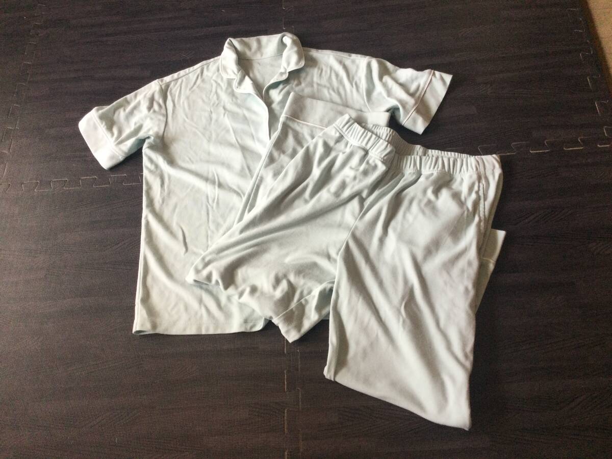 > GU ジーユー デザインホームウェア ライトブルーグリーン S レーヨン30%