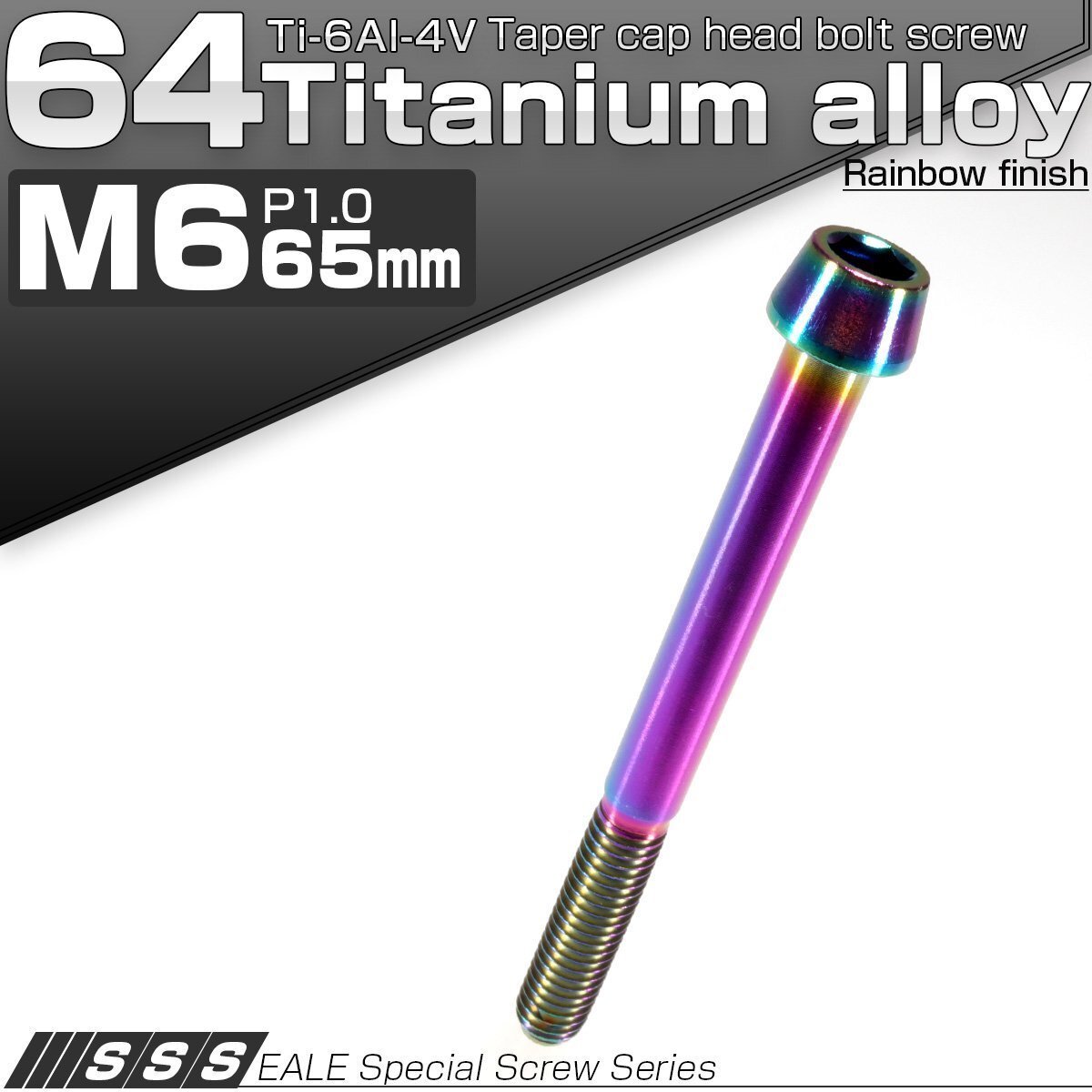 > チタンボルト M6×65mm P1.0 キャップボルト 虹色 レインボー 六角穴付きボルト テーパー JA122