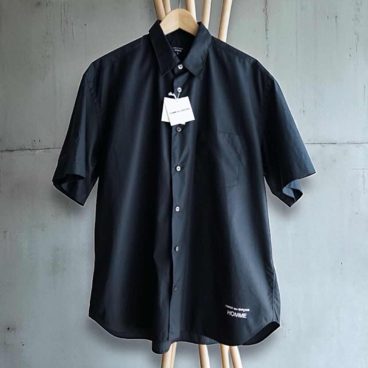 > 【極美品 /2025SS】COMME des GARONS HOMME コットンブロード ロゴ半袖シャツ 黒 S コムデギャルソン オム HO-B103-051 定価30800円 タグ